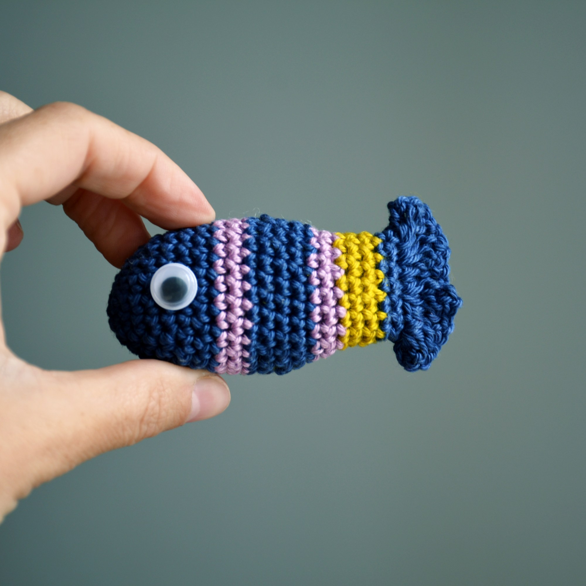 Nagyon megtetszett a forma, a színeket pedig szabadon lehet összeválogatni. Én uszonyok nélkül jobban kedvelem őket, és bár szemnek is több féle verzió elképzelhető, most ezt a műanyag szemeket próbáltam ki.