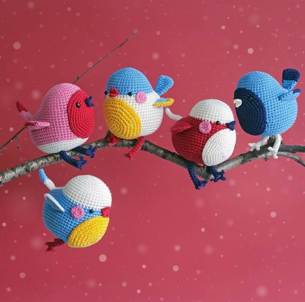 Ugyan Natura Crochet állította össze, ezt az ünnepi színvilágot, a madárkák most nem az ő mintái.