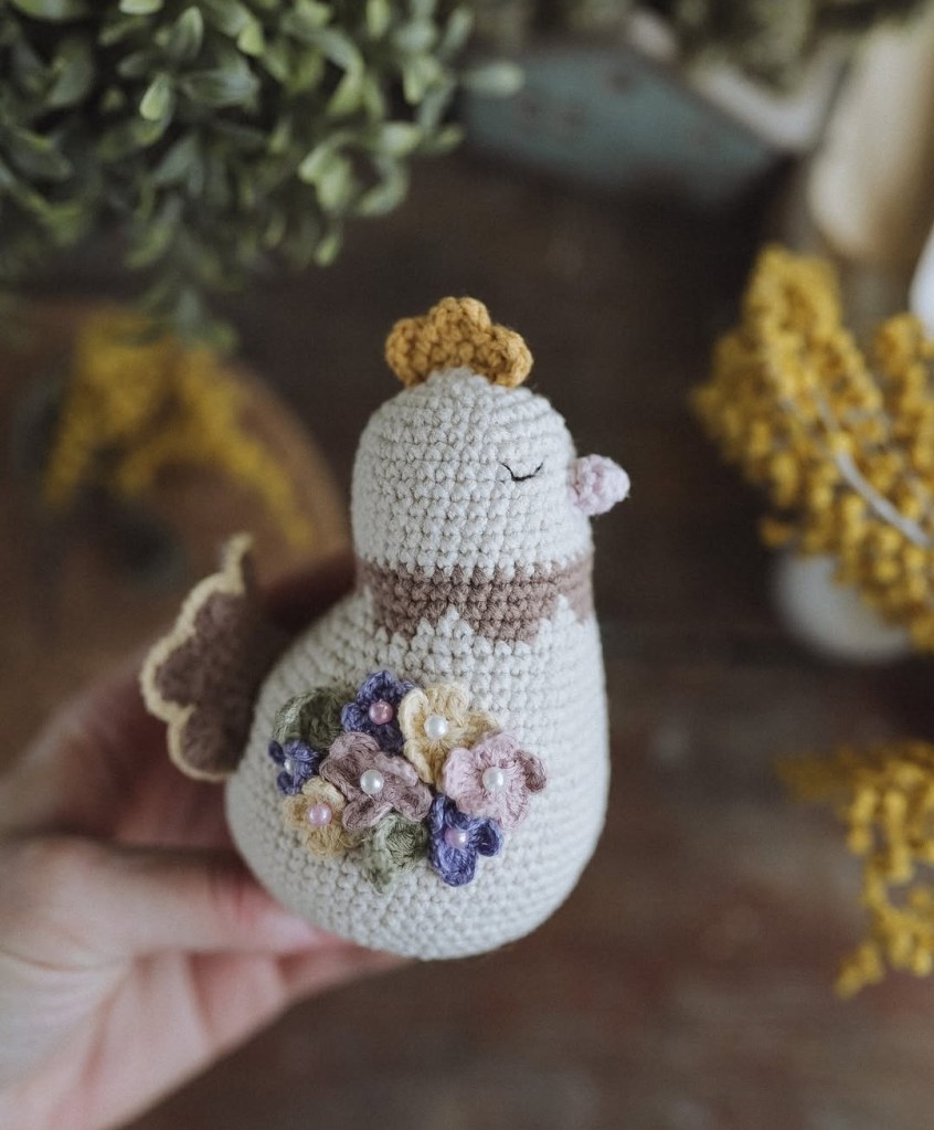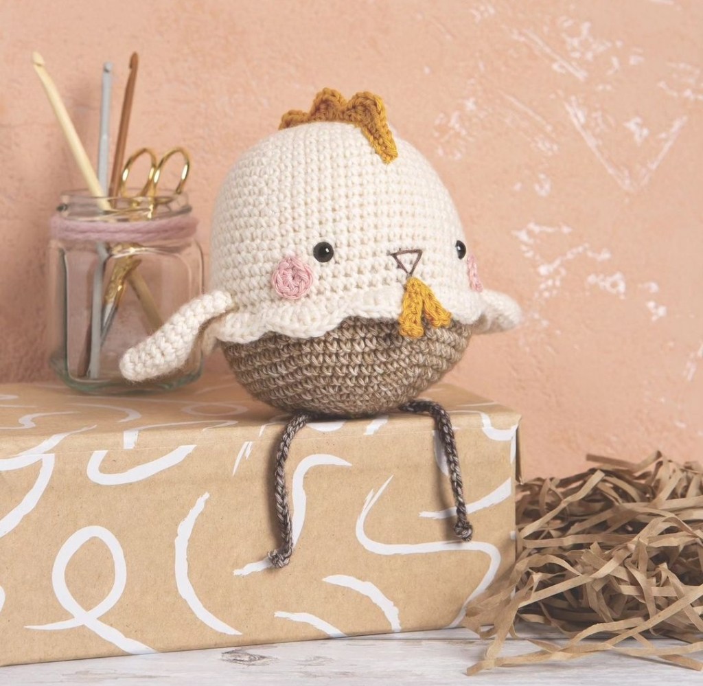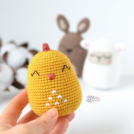Ez a horgolt csibe, egy hármas húsvéti szett része volt, én egy kicsit változtattam rajta, mert nekem a fején lévő kis búb olyan volt mintha egy tök lett volna. Plusz sokkal nagyobb lesz mint gondolnátok, a kép alapján marok darabnak tűnik, pedig nem az lesz.