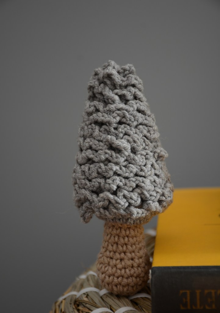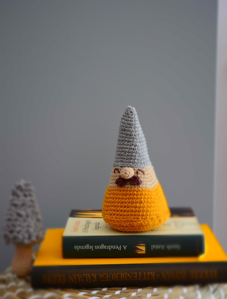 A gombák mindig a gyengéim voltak, először nemezeltem párat, nagyon könnyű és igazi DIY azaz csináld magad időtöltés. A múlt évben pedig, gyászmunkaként éltem meg horgolásukat. Amikor megláttam ezt a kucsmagombát, tudtam, hogy meg kell horgolnom. Ebből a könyvből származik.
