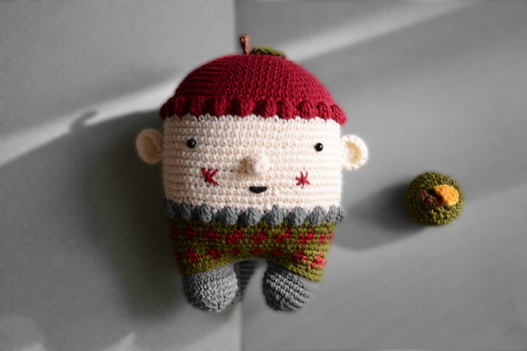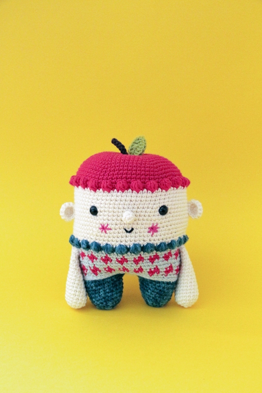 Nui a kis alma fiúcska volt a minta. Nagyon szeretem, ahogy az amigurumi életet ad, ilyen egyszerű dolgoknak is mint egy gyümölcs. A képen egy kisebb méret látható.