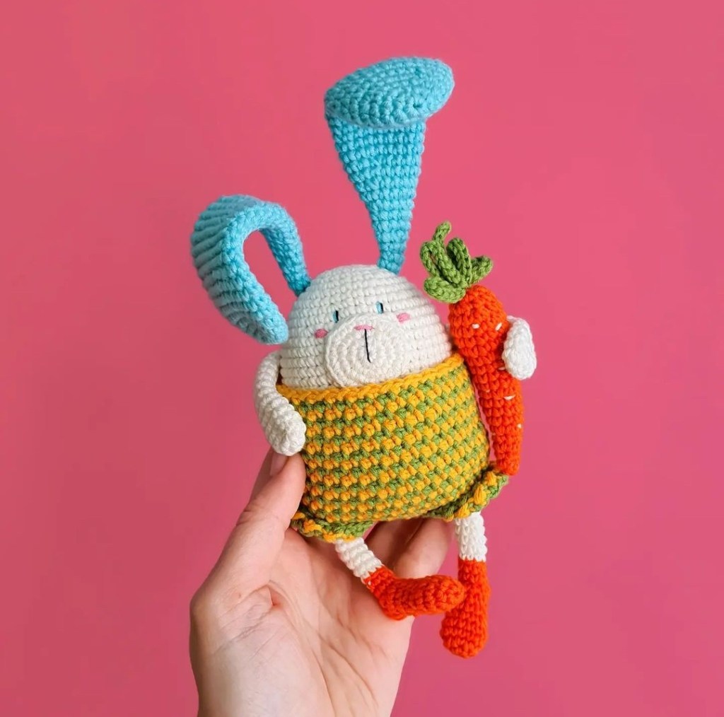 Kristina Tsvikevichstore oldalán találjátok ezt a tavaszi nyuszkót, csodásan ötvözi a horgolást és kötést, minden évszakban érdemes benézni hozzá, legyen az húsvéti nyuszi vagy éppen karácsonyi, megbízhatóak a mintái, én nagyon szeretem őket horgolni.